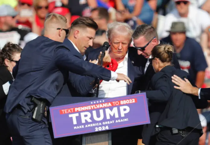 Νωρίτερα, πράκτορες της μυστικής υπηρεσίας πλαισίωσαν τον υποψήφιο για να τον προστατεύσουν με τα σώματά τους όταν ακούστηκαν εκπυρσοκροτήσεις και τον απομάκρυναν εσπευσμένα από τη σκηνή στην εκδήλωση, με τον πρώην πρόεδρο να έχει μικρή ποσότητα αίματος στο δεξί του αυτί και στο πρόσωπο, φωνάζοντας με τη γροθιά υψωμένη.