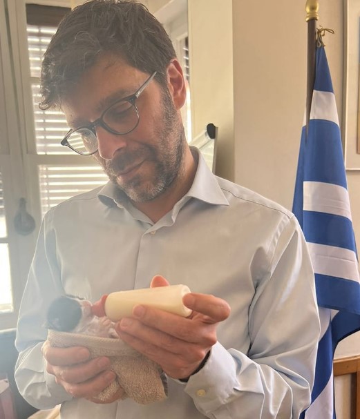 Στις φωτογραφίες με το γατάκι είχε γράψει ότι το έχει μαζί του στο γραφείο του και το φροντίζει, ωστόσο χωρίς να αφήσει πίσω τις καθημερινές του υποχρεώσεις.