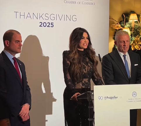 Η Κίμπερλι Γκιλφόιλ, που έχει στο παρελθόν εκφράσει την αγάπη της για την Ελλάδα και την αρχαία ελληνική ιστορία, βρέθηκε την περασμένη Πέμπτη στο δείπνο του Propeller Club με θέμα «Thanksgiving 2025», κερδίζοντας τις εντυπώσεις.