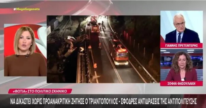 Η συζήτηση ήταν για τη συνταγματικότητα της άμεσης παραπομπής του Χρήστου Τριαντόπουλου στον φυσικό δικαστή. Τότε η δημοσιογράφος είπε πως υπάρχει ένα ερώτημα περί της συνταγματικότητας.
