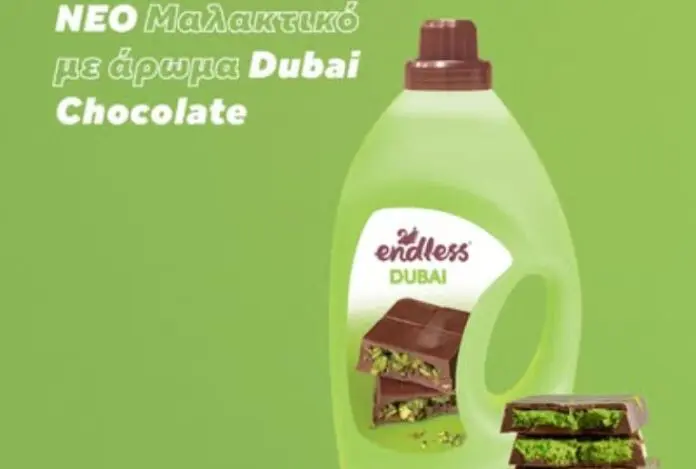 Στην ανάρτησή της αναφέρει: «Το πιο trending γλυκό, εμείς το κάναμε μαλακτικό. Δοκίμασέ το για ρούχα που συνδυάζουν απαλότητα και σοκολατένιο άρωμα πολυτελείας.