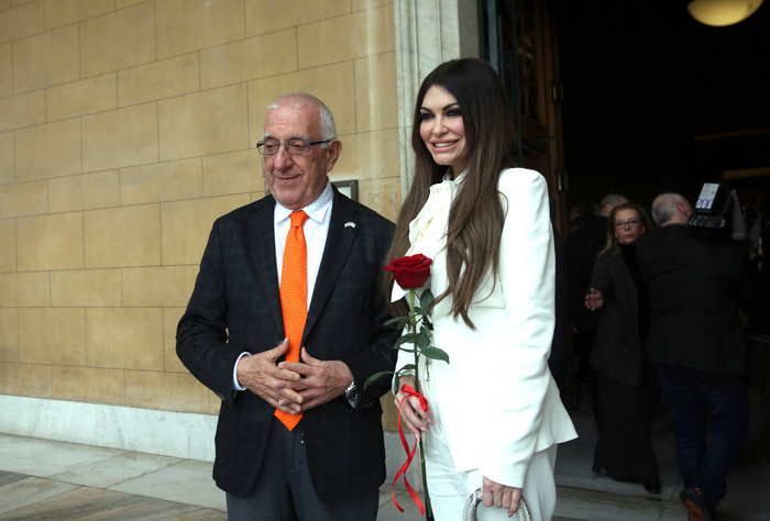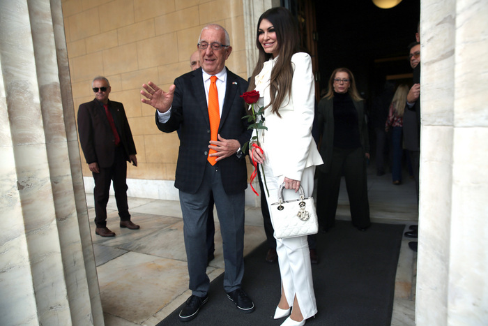 Με ένα τριαντάφυλλο υποδέχθηκε στη Βουλή την Κίμπερλι Γκιλφόιλ ο Νικήτας Κακλαμάνης (photos)
