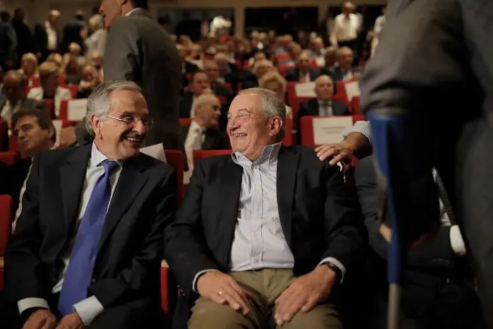 Κώστας Καραμανλής και Αντώνης Σαμαράς είναι αυτή την ώρα στην παρουσίαση του βιβλίου «Καραμανλής – Η πολιτική ως δημιουργία» στο Αμφιθέατρο Πινακοθήκης – Μουσείο Αλεξάνδρου Σούτσου.