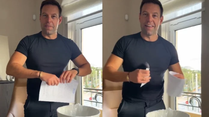 Στο τέλος του βίντεο, φαίνεται να σκίζει το εξώδικο και να το πετά στα σκουπίδια.