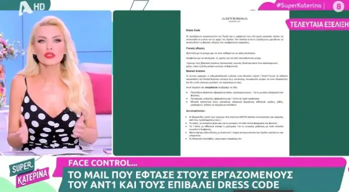 Την αποκάλυψη έκαναν ο Γιώργος Παπαδάκης και η Μαρία Αναστασοπούλου στην πρωινή εκπομπή τους. Ο Γιώργος Παπαδάκης σχολίασε on air το email το οποίο στάλθηκε στους εργαζόμενους του Ant1 και αφορά το dress code αλλά και την σχέση τους με το σαπούνι. Το mail αναφέρεται σε όλους όσοι βρίσκονται στις εγκαταστάσεις του ομίλου και σύμφωνα με την εκπομπή Σούπερ Κατερίνα, γίνεται αναφορά και στην καθαριότητα των υπαλλήλων.