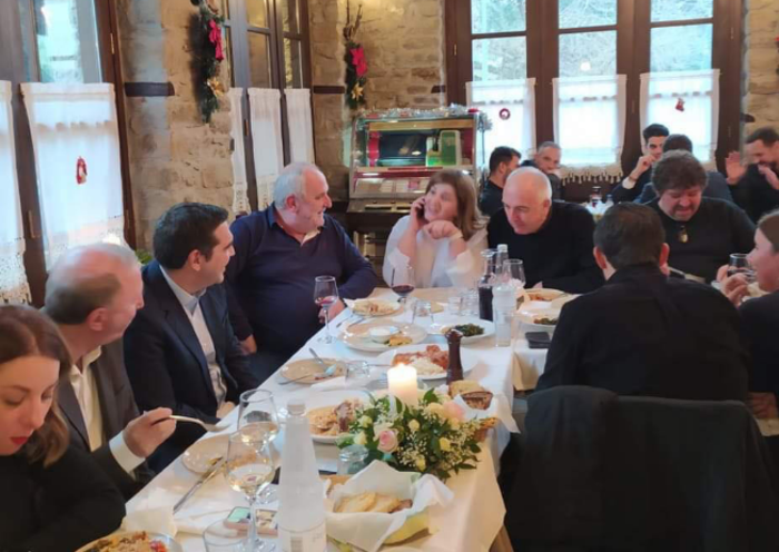 Το μεσημέρι γευμάτισε και τα είπε χαλαρά με συντρόφους του. Όπως κατέγραψε το trikalavoice.gr, στο τραπέζι παρακάθισαν μεταξύ άλλων ο βουλευτής Σάκης Παπαδόπουλος, οι πρώην βουλευτές Παναγιώτα Δριτσέλη, Χρήστος Σιμορέλης, ο γραμματέας της Ν.Ε. Τρικάλων του ΣΥΡΙΖΑ Σταύρος Νταούλας και ο αναπληρωτής αυτού Χρήστος Μπάτζιος, μέλη της Νομαρχιακής, λοιπά στελέχη, η δημοσιογράφος Ευαγγελία Σωτηρίου κ.α..