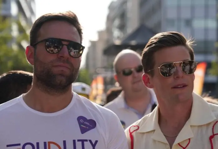 Εκεί και ο πρόεδρος του Κινήματος Δημοκρατίας Στέφανος Κασσελάκης με τον σύζυγό του Τάιλερ.