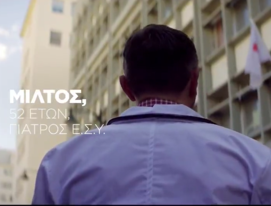 Στο σποτ εμφανίζονται οι πλάτες τριών ανθρώπων διαφορετικών ηλικιών και επαγγελμάτων που ζουν στην Ελλάδα.