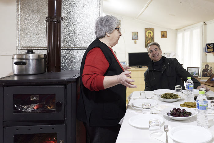 Μάλιστα, το ζευγάρι στον Έβρο κάλεσε τον πρωθυπουργό να περάσει στο σπίτι τους και να του κάνουν το τραπέζι. Ο κ. Μητσοτάκης δεν αρνήθηκε την πρόσκληση και, όπως φαίνεται και στις φωτογραφίες που ακολουθούν, κάθισε στο τραπέζι και συζήτησε με το ζευγάρι.