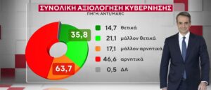 Εξαιρετικό ενδιαφέρον έχει η αξιολόγηση της Κυβέρνησης, με το 35,8% να την αξιολογεί θετικά ή μάλλον θετικά και 63,7% αρνητικά ή μάλλον αρνητικά.