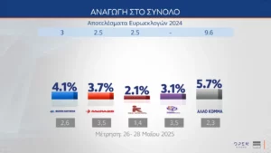 Στην πρόθεση ψήφου τα ποσοστά των κομμάτων είναι