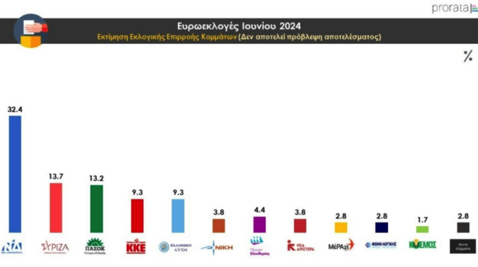 Δημοσκόπηση Prorata: Στο 32,4% η ΝΔ- Μάχη ΣΥΡΙΖΑ-ΠΑΣΟΚ για τη δεύτερη θέση