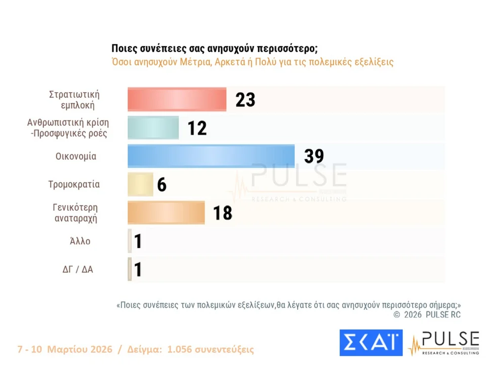 Δημοσκόπηση Pulse: Η Μέση Ανατολή και η ανησυχία για την οικονομία
