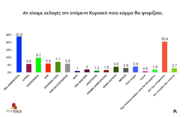 Με 23,8% η ΝΔ παραμένει αδιαμφισβήτητα πρώτη. Ακολουθούν: