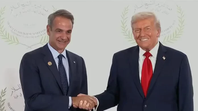 Ο Κυριάκος Μητσοτάκης, ο οποίος βρίσκεται στο Σαρμ Ελ Σέιχ, είχε νωρίτερα χειραψία με τον Ντόναλντ Τραμπ στο περιθώριο της διεθνούς Συνόδου για τη συμφωνία ειρήνης Ισραήλ – Χαμάς.