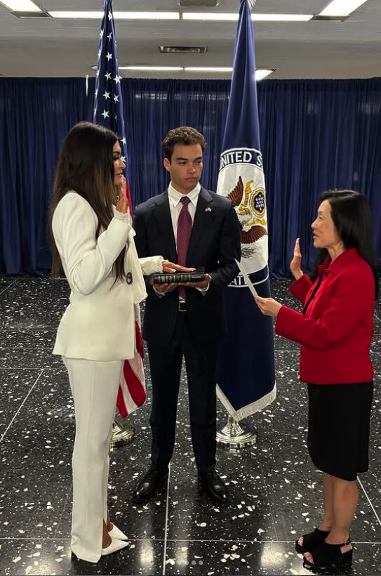 Στην τελετή παρέστησαν, μεταξύ άλλων, ο Μάικλ Ρήγας, αναπληρωτής υπουργός Εξωτερικών για τη Διαχείριση και τους Πόρους, ο Μάικλ Κράτσιος, επικεφαλής τεχνολογίας του Λευκού Οίκου, ο πρόεδρος της οργάνωσης «Greeks for Trump» Χρήστος Μαραφάτσος, καθώς και ο γιος της νέας πρέσβεως.