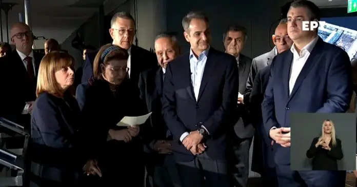 Η Πρόεδρος της Δημοκρατίας Κατερίνα Σακελλαροπούλου, ο πρωθυπουργός Κυριάκος Μητσοτάκης και πολλοί υπουργοί, μεταξύ αυτών ο υπουργός Μεταφορών Χρήστος Σταϊκούρας και η υπουργός Πολιτισμού Λίνα Μενδώνη, έφτασαν υπό βροχή στον σταθμό Βενιζέλου του μετρό Θεσσαλονίκης, όπου γίνεται η ξενάγηση.