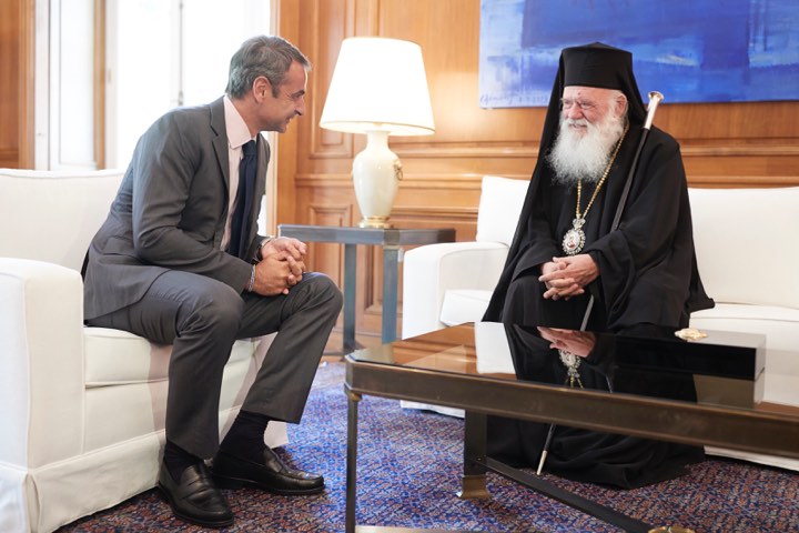 Ο πρωθυπουργός Κυριάκος Μητσοτάκης συναντήθηκε με τον Αρχιεπίσκοπο κ. Ιερώνυμο στο Μέγαρο Μαξίμου, όπου συζήτησαν για τις σχέσεις Εκκλησίας- Κράτους.