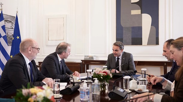 Ο πρωθυπουργός Κυριάκος Μητσοτάκης συναντήθηκε σήμερα στο Μέγαρο Μαξίμου με τον Kristian Schmidt, διευθυντή αρμόδιο για τις χερσαίες μετακινήσεις στη Γενική Διεύθυνση Κινητικότητας και Μεταφορών της Ευρωπαϊκής Επιτροπής, τον εκτελεστικό διευθυντή του ευρωπαϊκού οργανισμού σιδηροδρόμων Josef Doppelbauer, την Elzbieta Lukaniuk, μέλος του επιτελείου της Επιτρόπου Μεταφορών Adina Vălean και την αναπληρώτρια επικεφαλής της αντιπροσωπείας της ευρωπαϊκής επιτροπής στην Ελλάδα, Ελένη Παλαιολόγου.