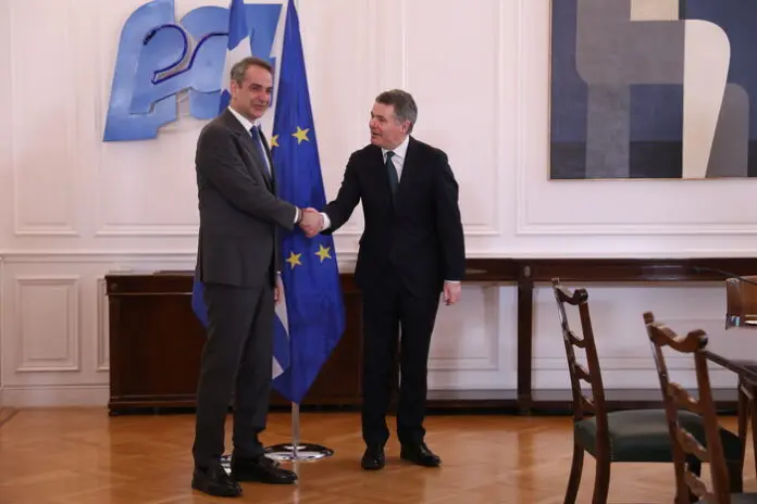 Ο Κυριάκος Μητσοτάκης αναφέρθηκε στις θετικές επιδόσεις της ελληνικής οικονομίας κατά τη διάρκεια του χαιρετισμού του προς τον πρόεδρο του Eurogroup, Πασκάλ Ντόναχιου, τον οποίο υποδέχθηκε στο Μέγαρο Μαξίμου.