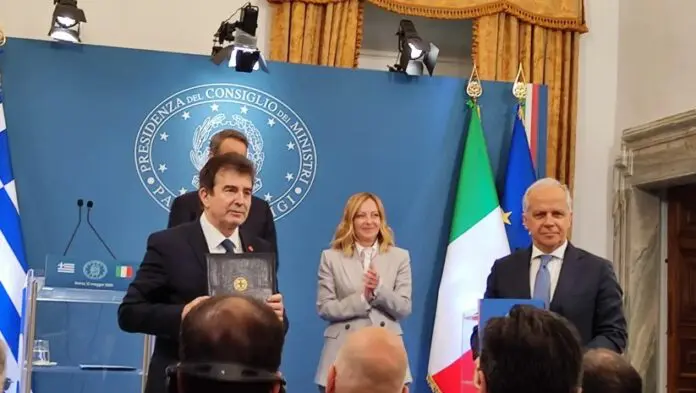 Η υπογραφή των δύο Μνημονίων πραγματοποιήθηκε σήμερα στη Ρώμη, στο πλαίσιο της συμμετοχής του κ. Χρυσοχοΐδη, στο 2ο Ανώτατο Συμβούλιο Συνεργασίας Ελλάδας-Ιταλίας, όπου επιβεβαιώθηκε για άλλη μια φορά σήμερα η στρατηγική σχέση Ελλάδας – Ιταλίας στον τομέα της Ασφάλειας, όπως επισημαίνεται σε ανακοίνωση του Υπουργείου Προστασίας του Πολίτη.