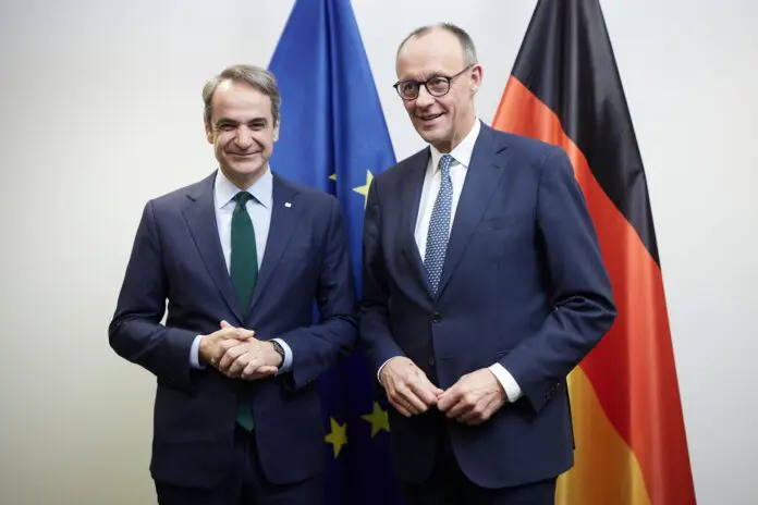 Θέματα αμοιβαίου και ευρωπαϊκού ενδιαφέροντος, με έμφαση στην οικονομία και την ανταγωνιστικότητα της Ευρωπαϊκής Ένωσης, οι επικείμενες εκλογές στην Γερμανία, αλλά και η δυναμική ανάκαμψη της ελληνικής οικονομίας, απασχόλησαν την συνάντηση που είχε νωρίτερα απόψε ο πρωθυπουργός Κυριάκος Μητσοτάκης με τον πρόεδρο του Χριστιανοδημοκρατικού Κόμματος (CDU) και υποψήφιο καγκελάριο Φρίντριχ Μερτς, στο περιθώριο της συνόδου των ηγετών του Ευρωπαϊκού Λαϊκού Κόμματος που πραγματοποιείται στο Βερολίνο, σύμφωνα με κυβερνητικές πηγές.