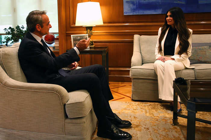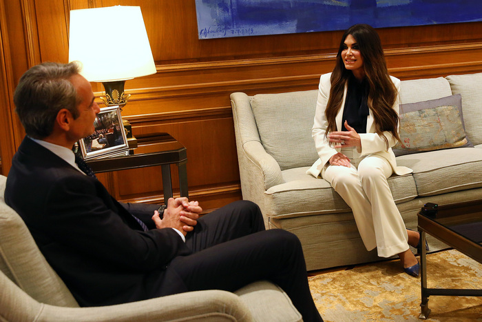 Σε ιδιαίτερα θετικό κλίμα πραγματοποιήθηκε στο Μέγαρο Μαξίμου η πρώτη επίσημη συνάντηση του πρωθυπουργού Κυριάκου Μητσοτάκη με την πρέσβη των ΗΠΑ στην Ελλάδα, Κίμπερλι Γκίλφοϊλ, μία ημέρα μετά την επίδοση των διαπιστευτηρίων της στον Πρόεδρο της Δημοκρατίας, Κωνσταντίνο Τασούλα. Η κ. Γκίλφοϊλ έφτασε στο Μέγαρο στις 10:00, όπου την υποδέχθηκε και ο σκύλος του πρωθυπουργού, Πίνατ.