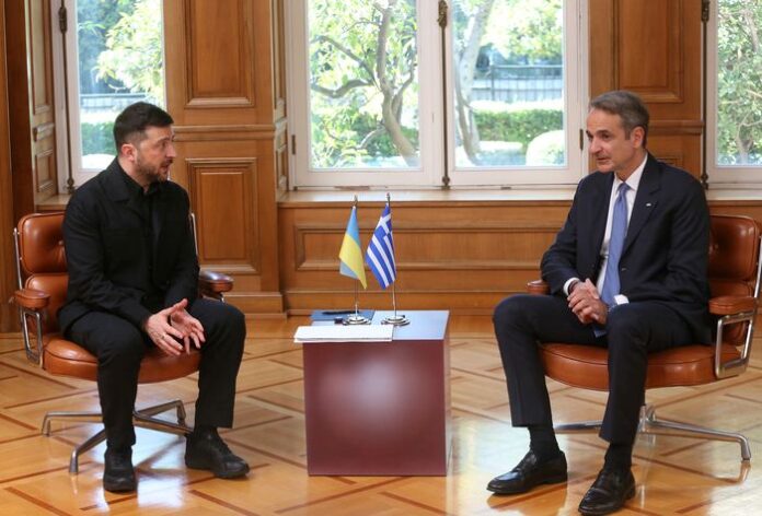 Στο Μέγαρο Μαξίμου βρέθηκε ο πρόεδρος της Ουκρανίας, Βολοντίμιρ Ζελένσκι όπου συναντήθηκε με τον πρωθυπουργό, Κυριάκο Μητσοτάκη.