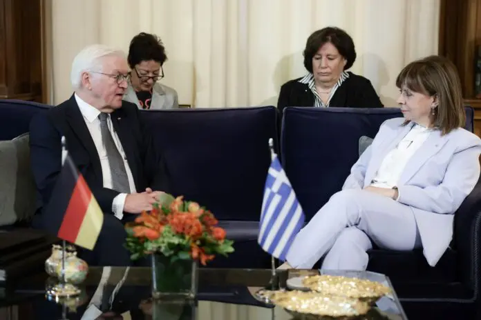 Η Κατερίνα Σακελλαροπούλου, έθεσε το ζήτημα των γερμανικών αποζημιώσεων στον πρόεδρο της Γερμανίας, Φρανκ-Βάλτερ Σταϊνμάιερ, κατά τη διάρκεια της επίσκεψης του στην Ελλάδα.