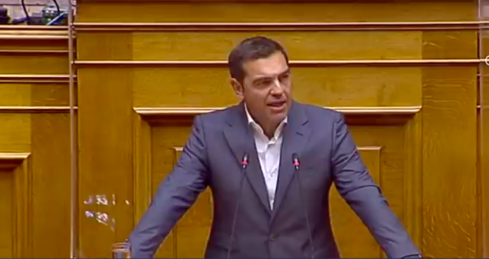 Με κριτική στην κυβέρνηση για την πολιτική της στα εθνικά θέματα ξεκίνησε την ομιλία του στην Βουλή για την συζήτηση της πρότασης δυσπιστίας, ο πρόεδρος του ΣΥΡΙΖΑ, Αλέξης Τσίπρας υποστηρίζοντας ότι «δεν έχει στρατηγική για την προστασία των κυριαρχικών δικαιωμάτων».